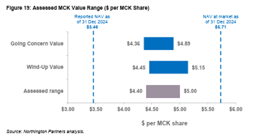 These two valuations highlight the conundrum facing MCK directors – the company is (arguably) worth more in pieces than operating in its current form. That puts pressure on both Directors and company executives to exceed their own expectations in the longer-term.
