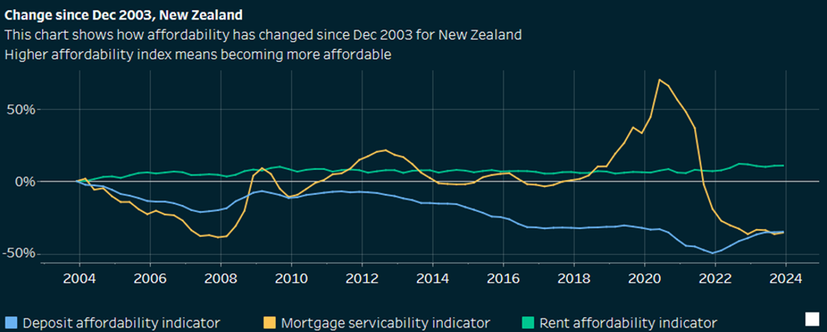 Direct Investment: This form of direct property investment is the one most known to New Zealanders, often achieved by buying their first home, building equity in that asset and then leveraging that additional equity further to purchase an investment property. However, the current relationship of incomes to house pricing makes that approach more difficult for many younger New Zealanders. The chart below reflects a common concern for many – it’s hard to save for a deposit fast enough. Concerningly for existing owners, the change in interest rates over the last few years has had a significant impact on mortgage servicability.