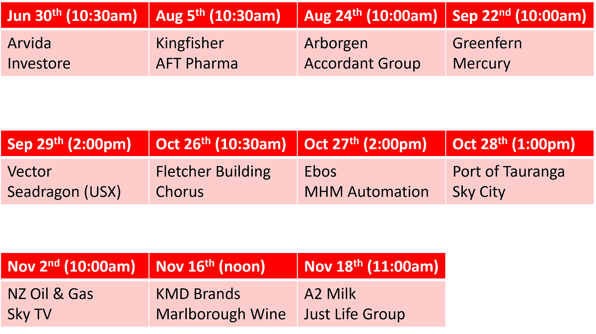 In general, these match-ups are less likely to cause issues for most investors than some of the conflicts we observed in 2021 (you can see last year’s shareholder meetings report at this link). We note that the sparsely-attended Chorus meeting (held in Wellington) occurred at the same time as the meeting for Fletcher Building (held in Auckland) – although we’re not sure this made a significant difference for either, given the different cities. Some shareholders questioned the scheduling conflict between two North-shore based companies (Kingfisher and AFT Pharma) – this was acknowledged (with the benefit of hindsight) by KFL Chair Andy Coupe in a later conversation with NZSA.